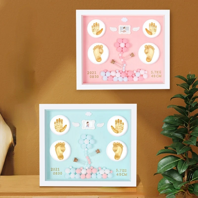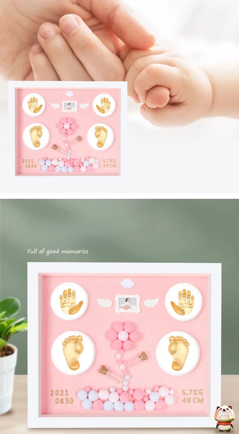Printing and fingerprint kits, photo frame kits for newborns, girls, and boys, baby shower gifts, baby registration, gifts for new parents, perfect baby memory and nursery room decoration. Specifications: Item Type: Baby Handprint Making Kit Frame size: approximately. 28 x 33 cm